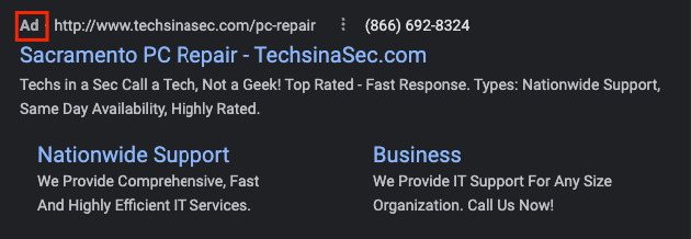 Another great strategy to include when you do digital marketing for computer repair shops is pay-per-click (PPC) advertising. PPC ads appear at the top of search results above organic SEO listings.