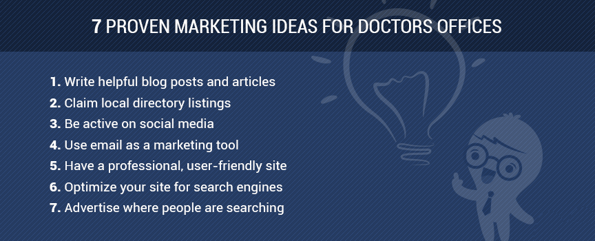 The top seven marketing ideas for doctor offices include: