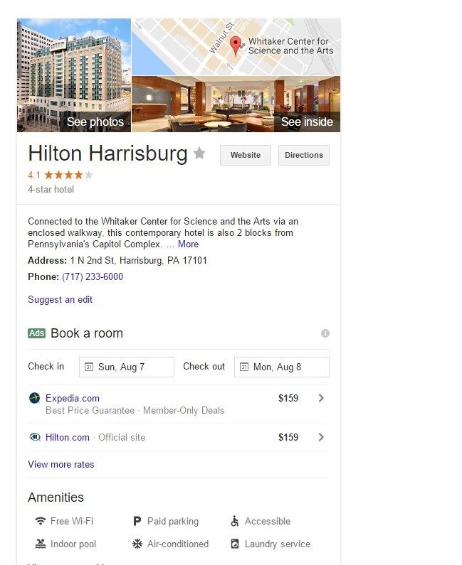 Have you noticed that searches for hotels in your area don’t always return a regular list of search results? If you’re seeing results below a list of locations with addresses, phone numbers, and photos, you are seeing the Google’s “My Business” feature.
