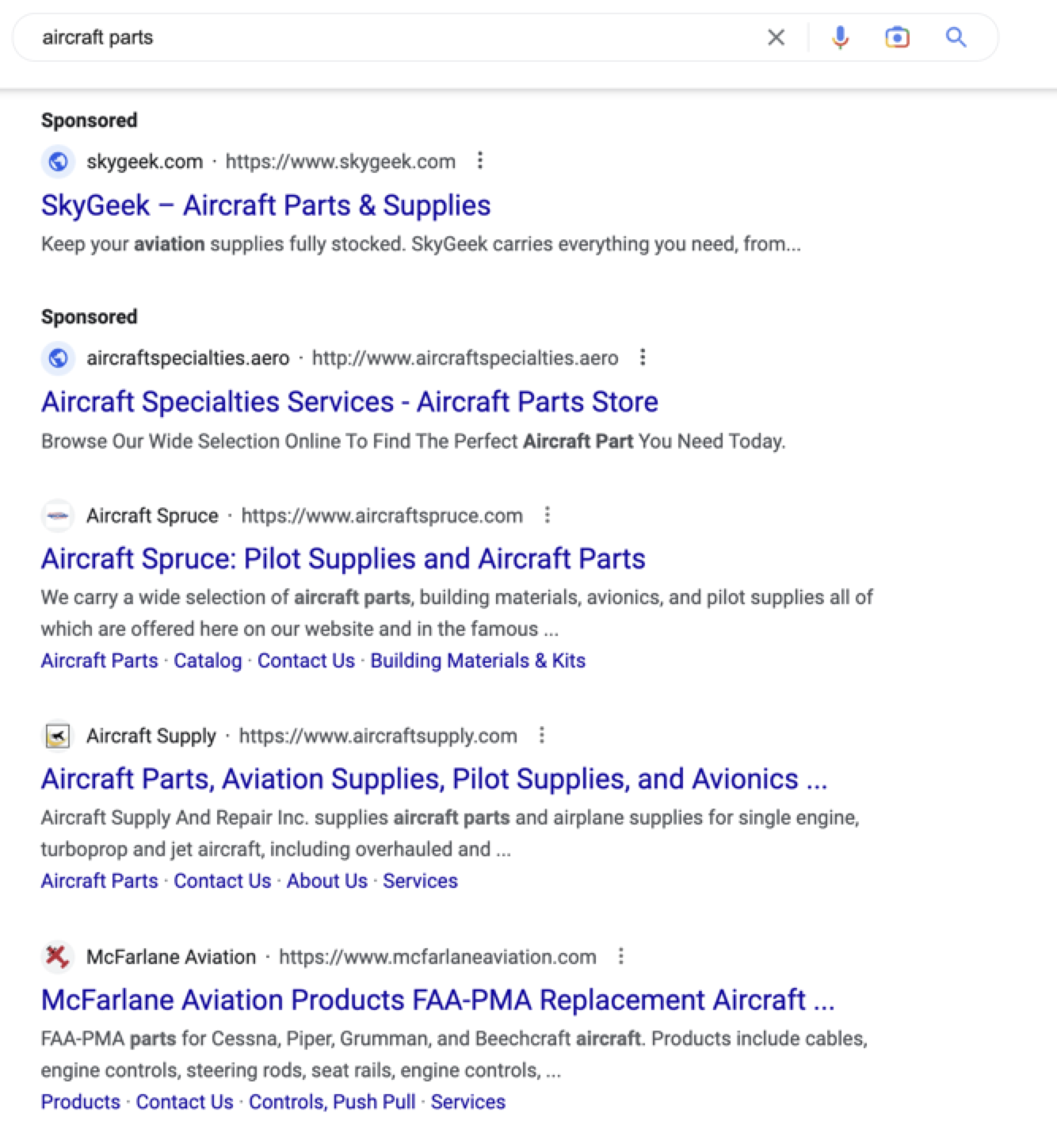 Say you offer plating services for the automotive industry. When a user searches “automotive plating services,” your ad will appear at the top of the SERPs, encouraging them to click and learn more.